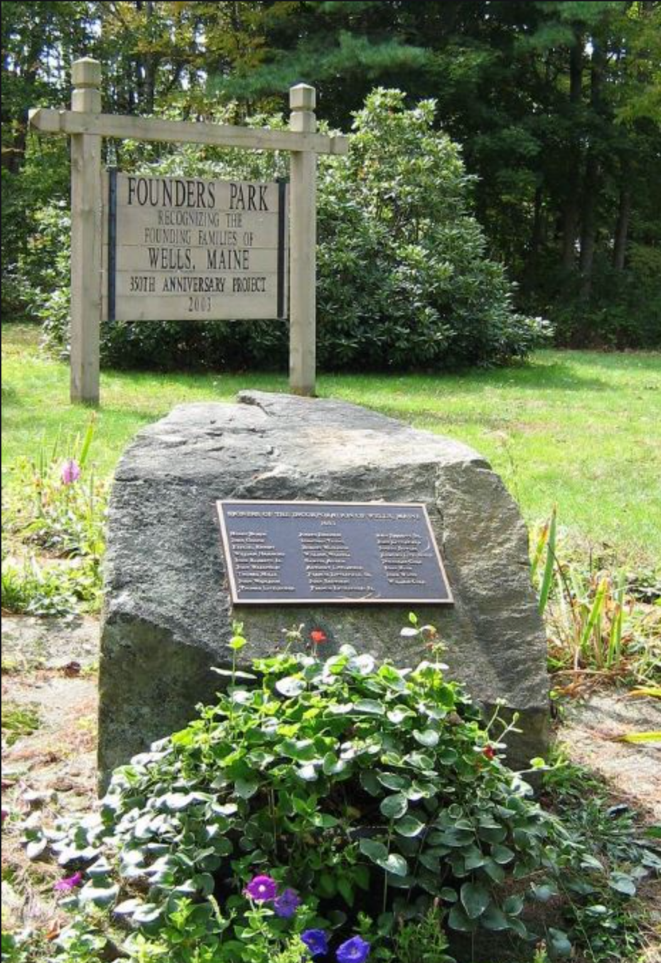 Below is Founder's Park with the plaque commemorating the founding of Wells.