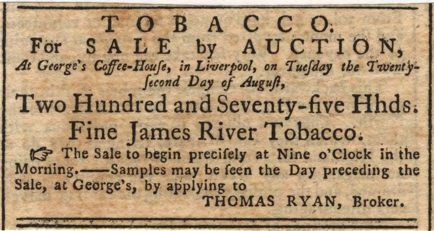 In the early years of the tobacco trade, the large Viriginia plantations owners worked on developing personal relationships with the English merchants they did business with. This allowed planters to receive payment immediately instead of waiting for the tobacco to be sold in Europe. Large auctions at coffee houses allowed smaller merchants in England to obtain tobacco from the importers.
