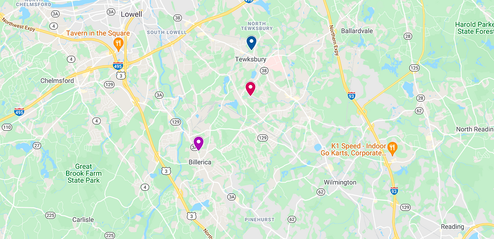 Thomas was able to acquire considerable property in Billerica and also a sawmill in an area of Billerica now called Pattenville. In the map below, Pattenville is the red marker between Tewksbury, the part of Billerica where the Kittredges lived, and Billerica proper.